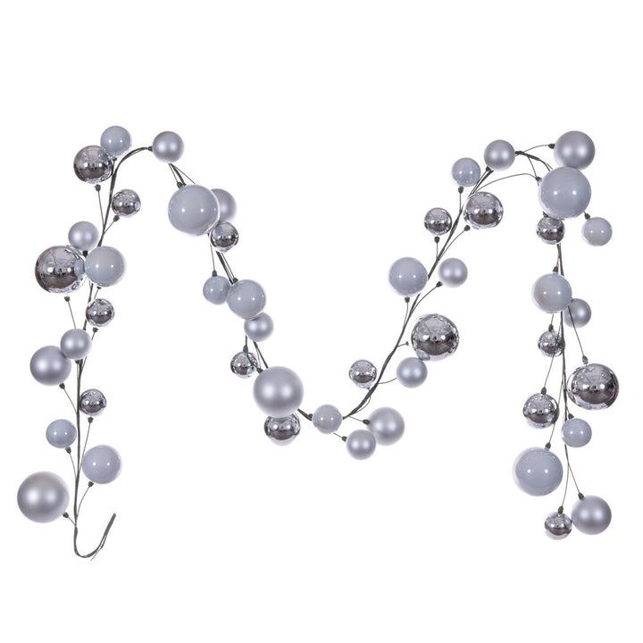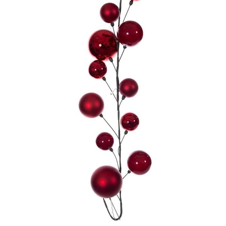 Add a festive, dimensional touch to your décor with this 10-foot Branch Ball Wire Garland. Featuring a mix of 4", 3", and 2.4" shatterproof ornaments, this garland delivers eye-catching depth and color. Built on a flexible wire base with a pre-attached hanging hook, it installs quickly and shapes easily to fit mantels, stair railings, doorways, tabletops, and more.