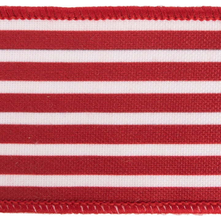 2.5"" x 10 Yards Red Horizontal Red Stripe Print on Bovet Lining Ribbon. It measures 2.5 inches wide by 10 yards long. Wired edges for easy shaping and decorating.