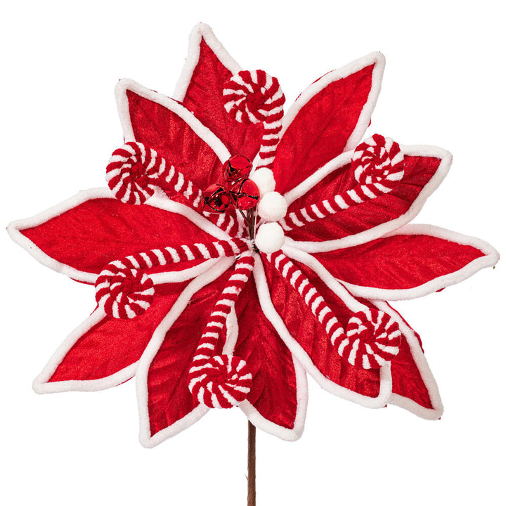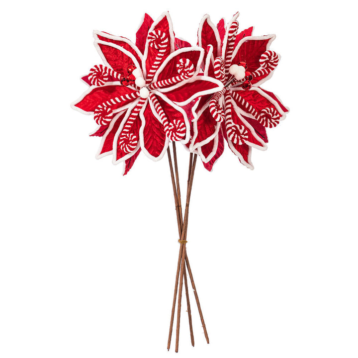 21.5" Red Candy Cane Poinsettia Spray- Set of 4