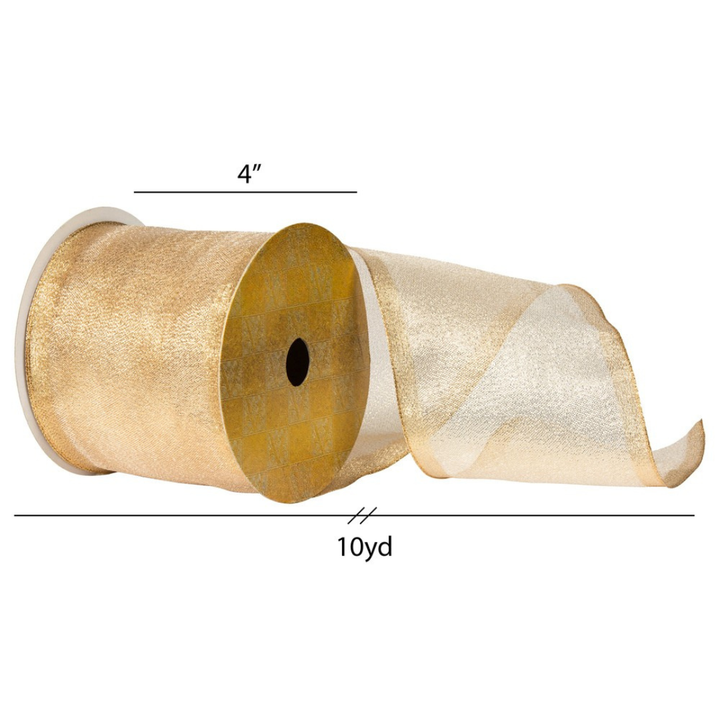 Elevate your holiday décor with this shimmering champagne Christmas ribbon. Crafted from sheer nylon with a soft, shiny finish, it adds an elegant touch to trees, wreaths, floral arrangements, and gift wrapping. The wired edges make it easy to bend, shape, and create full, gorgeous bows that hold their form beautifully.