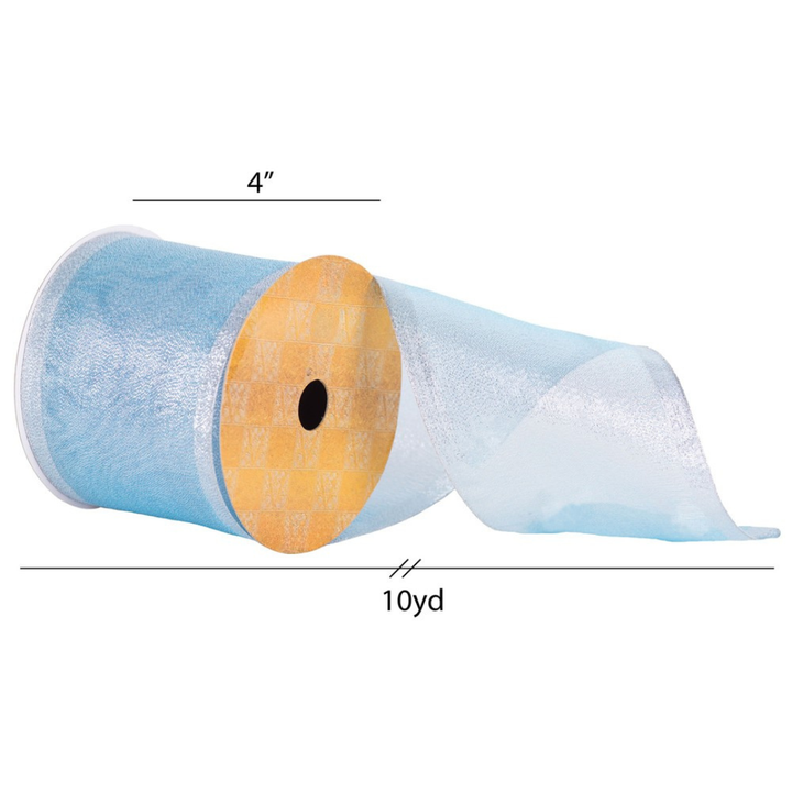 4" x 10 Yards Pale Blue Shiny Wired Ribbon